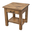 The Milltown Large Open End Table is a rustic style accent table featuring straight, square legs and a distressed plank top. The Amish made end table is handcrafted by artisans in Ohio and built to be sturdy and long lasting. Order this piece in your choice of wood and color. For more details, contact a member of our team at Upstate Amish Furniture Gallery.
