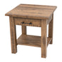 The Milltown Large Open End Table is a rustic style accent table featuring straight, square legs and a distressed plank top. The Amish made end table is handcrafted by artisans in Ohio and built to be sturdy and long lasting. Order this piece in your choice of wood and color. For more details, contact a member of our team at Upstate Amish Furniture Gallery.