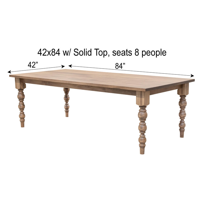 The Parson Turned Leg Dining Table features self-storing leaves that store inside the table. Every dining table is available in your choice of wood type and stain color.
