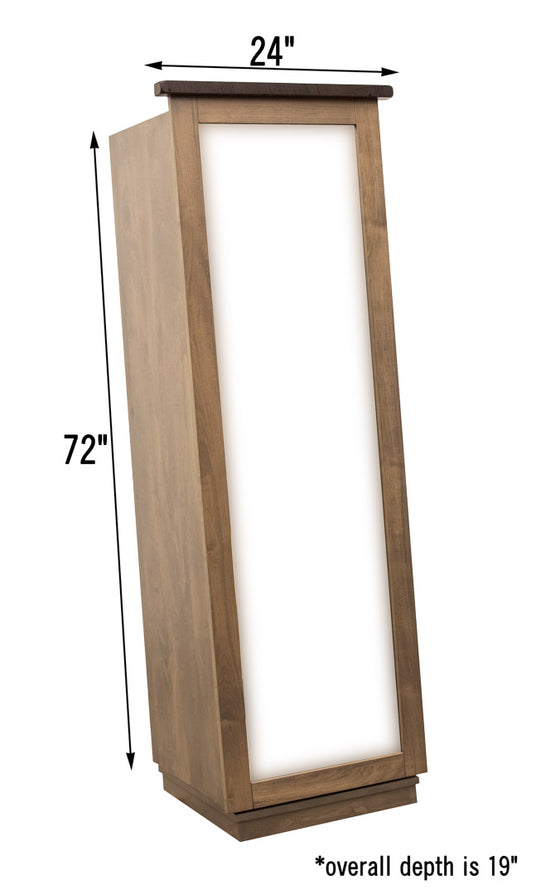 The Shaker Revolving Jewelry & Shoe Tower is a stylish organized for accessories, jewelry, and shoes. The interior features an optional framed mesh swing out earring door and the backside has space for 30 pairs of shoes, or belts and scarves. Order this Amish made shoe tower in your choice of wood and color. For more information, contact a member of our team at Upstate Amish Furniture Gallery.
