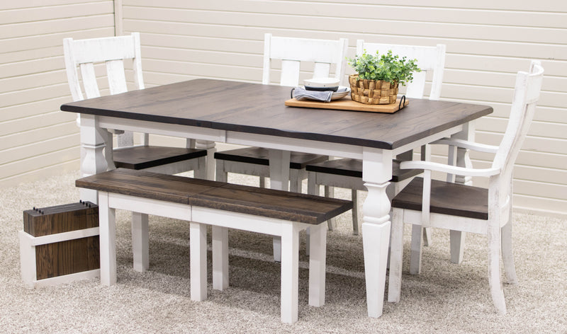 The Straight Leg Expandable Dining Bench is Amish-made with solid wood and built to last. Each bench comes with leaves to easily double it's length as needed. The leaves are stored in their own wood case as pictured. For more information, contact a member of our team.