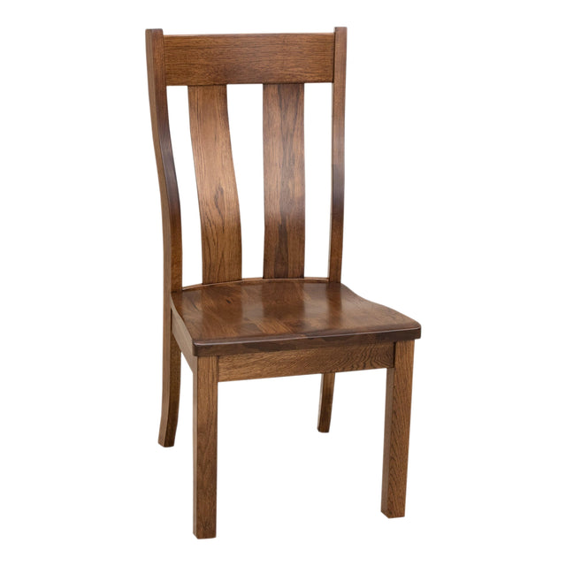 The Urbana Side Dining Chair features a steamed and bent back and shaker style legs, fitting with many styles of dining tables. The Amish-made dining chair is crafted with solid wood, constructed to be durable and long-lasting. The chair can be custom ordered in any wood species and color. Contact a member of our team for more details.