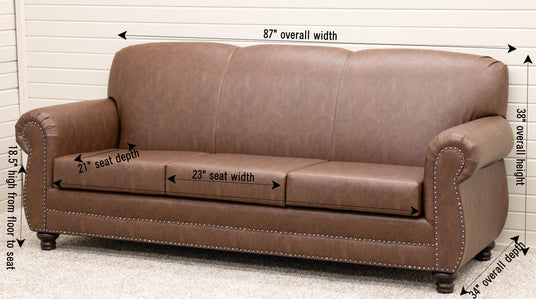 The Wilmington Stationary Sofa is a classic, timeless style sofa with rolled arms. The sofa features a nail head design and vertical welts for added texture. Order this Amish made sofa in your choice of fabric color. For more details, contact a member of our team at Upstate Amish Furniture Gallery.